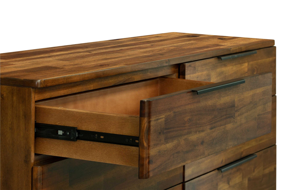 Add a little warmth to your space with this retro inspired Dresser. Hand crafted with solid acacia wood, featuring rounded...