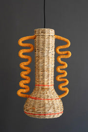 Recycled Paper Rope and Iron Pendant Light with Squiggle Detail