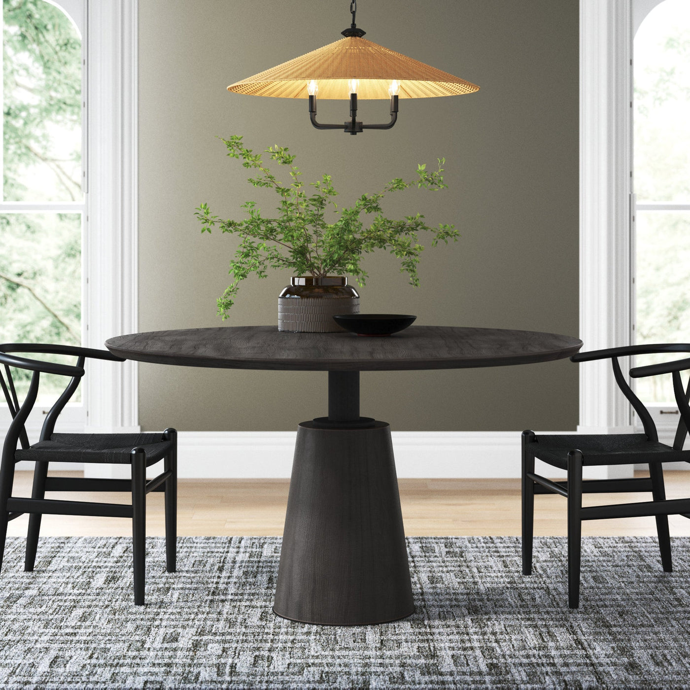 Expertly designed with a blend of sculptural and industrial elements, this Westley 54'' Round Dining Table will elevate any dining space. The solid wood top features a dark brown stain that complements the natural grain and character of the wood, while the black iron support post adds a striking contrast between the cone-shaped pedestal base and the round tabletop. With its ability to comfortably seat four, this table is perfect for intimate dinners or hosting game night with a few friends. Experience the perfect balance of style and functionality with the Westley 54'' Round Dining Table. The solid wood top boasts a stunning dark brown stain that accentuates the natural grain and character of the wood, while the black iron support post adds a striking contrast between the cone-shaped pedestal base and the round tabletop. This table comfortably accommodates four, making it ideal for intimate dinners or casual gatherings with a few friends. Whether enjoying a meal or playing games, this dining table will elevate any dining space with its expertly crafted design. Choose your wood species as you want Acacia wood Mango wood Rose wood Oak wood Ash wood Teak woodExpertly designed with a blend of sculptural and industrial elements, this Westley 54'' Round Dining Table will elevate any dining space. The solid wood top features a dark brown stain that complements the natural grain and character of the wood, while the black iron support post adds a striking contrast between the cone-shaped pedestal base and the round tabletop. With its ability to comfortably seat four, this table is perfect for intimate dinners or hosting game night with a few friends. Experience the perfect balance of style and functionality with the Westley 54'' Round Dining Table. The solid wood top boasts a stunning dark brown stain that accentuates the natural grain and character of the wood, while the black iron support post adds a striking contrast between the cone-shaped pedestal base and the round tabletop. This table comfortably accommodates four, making it ideal for intimate dinners or casual gatherings with a few friends. Whether enjoying a meal or playing games, this dining table will elevate any dining space with its expertly crafted design. Choose your wood species as you want Acacia wood Mango wood Rose wood Oak wood Ash wood Teak wood